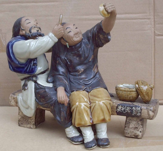 具體到石灣公仔來說,它最初出現(xiàn)是負(fù)載在建筑上,也是為產(chǎn)業(yè)去服務(wù),到明末清初,從瓦脊公仔獨(dú)立出來,慢慢形成單個(gè)人物造型,再從解放初到現(xiàn)在它慢慢形成一種審美文化,審美價(jià)值也逐漸高過實(shí)用價(jià)值。隨著社會文明進(jìn)程的加快,人們對實(shí)用器的審美要求越來越高,無論是生活形態(tài)或生活方式,對審美度都有了較高的要求,使用的陶器不僅僅要求實(shí)用,也要求審美,這對藝術(shù)家提出了一個(gè)較高的要求。