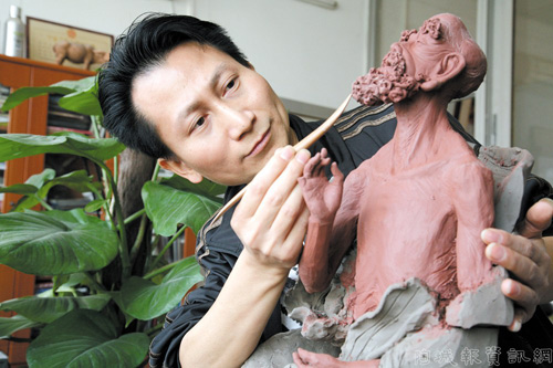 在佛山新添的五位“國大師”中,黃志偉是最年輕的一位,如此年輕就獲得此殊榮,也得益于其出生于陶藝之家,長期受到陶藝文化的熏陶。他師從于中國雕塑界泰斗潘鶴,在繼承了其雕塑的創(chuàng)作技法之余,他融會貫通,在結(jié)合其他技藝的同時(shí),不斷探索創(chuàng)新大膽吸取中國畫線描“十八法”與漢代、現(xiàn)代的塊面結(jié)構(gòu)神髓交融,拓新出陶塑新法——“線塑”,突破普通雕塑的固有程式,靈活自如發(fā)揮陶泥線條特有形態(tài)風(fēng)韻,以泥條的“線”來塑“面”、“形”、“神”,工意結(jié)合、新穎別致,使作品主題神韻突出。其創(chuàng)作的《悠閑老子》、《怡情達(dá)摩》、《髙瞻遠(yuǎn)囑》、《超脫》等作品,多次獲得國家級與省級的評比獎項(xiàng)。對于此次能入選“中國陶瓷藝術(shù)大師”名單,他也表示,這個(gè)榮譽(yù)意味著石灣的陶藝文化已逐漸被國家所認(rèn)可和重視,對于石灣陶藝文化的繼承和發(fā)展有著積極的促進(jìn)作用。