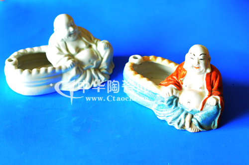 德化瓷器以如脂似玉的質(zhì)感和栩栩如生的雕塑藝術(shù)名揚四海,獨步世界瓷林。當然,作為家居客廳的案桌或茶幾上幾乎必備的陶瓷煙灰缸,自然也彰顯著德化瓷那特殊的藝術(shù)語言。自從清末以來,我國市民抽煙群體越來越龐大,煙灰缸便取代了鼻煙壺,不但大量生產(chǎn),而且像鼻煙壺一樣,瓷藝師千方百計、匠心獨具、巧妙構(gòu)思、精雕細刻,賦以生動活潑的藝術(shù)生命。童老師說:“特別是德化瓷雕煙灰缸,各種典雅瓷質(zhì)的玉‘白’和多姿多彩的藝‘雕’,都得到充分的發(fā)揮,可以說,近現(xiàn)代德化瓷藝的發(fā)展與成就,從這些瓷雕煙灰缸系列中,都可窺視到她的身影。”