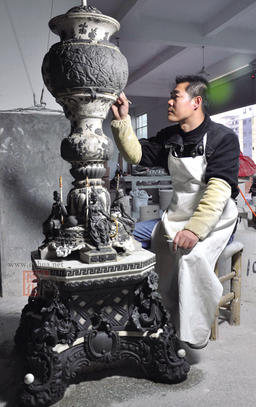 德化瓷國春秋家居連鎖有限公司郭總介紹,燒制這款大型瓷燈座除了對窯爐要求高外,還需克服瓷土在高溫下容易軟化導(dǎo)致支柱變形的難題,因為這款燈座不只是簡單的直形圓柱,而是采用手工拼接和新式注漿等成型方法,在燒成后需要烤金、貼花紙等多道工序的反復(fù)燒制,成型和燒制工藝相當復(fù)雜。