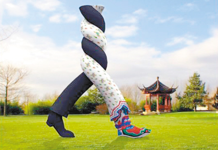 據(jù)了解,中國腿部分由燒制好的大型瓷塊組裝,而虎頭鞋部分則是整體燒制,虎頭鞋長約2.4米,寬1.3米。這個整體燒制的“虎頭鞋”也是全世界最大的單體瓷器。另一條用不銹鋼制作的“西方腿”,目前在廣州也制作完成。這座大型群雕進駐世園會園區(qū),也必將成為西安世園會的一大景觀亮點。(記者 李博海)