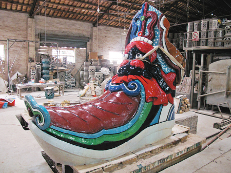 “絲綢之路起點”,已在廣州佛山燒制成功,將于近日運抵世園會園區(qū)進行安裝。圖為巨腿一只腳上的“虎頭鞋”。世園會籌備辦供圖