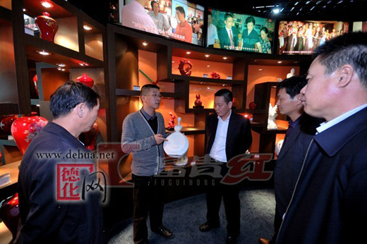 2月27日,天津市東麗區(qū)人民政府副區(qū)長(zhǎng)軋乃利,天津市福建商會(huì)會(huì)長(zhǎng)阮志雄一行8人在德化縣政府領(lǐng)導(dǎo)黃耀昆、黃發(fā)建的陪同下蒞臨福建省富貴紅文化發(fā)展有限公司參觀考察。