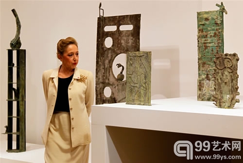 Isabelle Maeght在米羅-胡安雕塑作品前