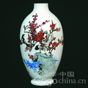 陶瓷藝術·丁華漢大師手繪梅開五;ㄆ