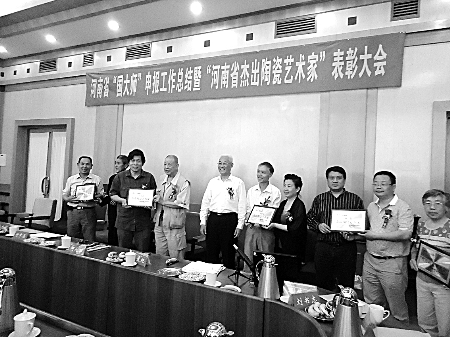 “評上‘國大師’的,肯定是好樣的;沒有評上‘國大師’,肯定也有好樣的。”何天雄先生在“河南省‘國大師’申報工作總結暨‘河南省杰出陶瓷藝術家’表彰大會”上說,“8月初,在北京人民大會堂,將表彰一些為陶瓷藝術貢獻了畢生精力,但與‘國大師’失之交臂的能工巧匠。”