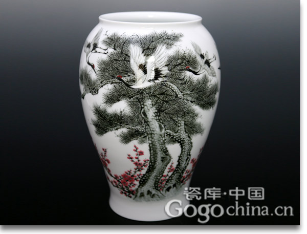 圖:陶瓷藝術(shù)大師孫新作品水手繪松鶴延年釉下五彩花瓶