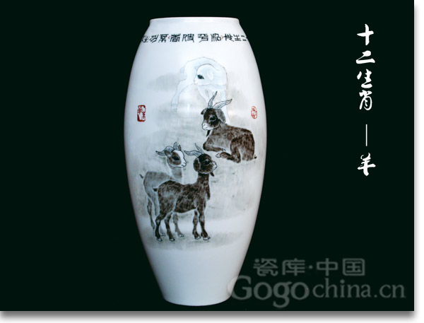圖:易炳萱釉下五彩十二生肖瓷器花瓶之羊