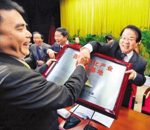 。?jìng)(gè)多月前的2010年12月15日,在文化部組織的第四批國(guó)家文化產(chǎn)業(yè)示范基地命名授牌大會(huì)上,永豐源董事長(zhǎng)劉權(quán)輝從文化部部長(zhǎng)蔡武手中接過(guò)牌匾,獲得國(guó)家文化產(chǎn)業(yè)示范基地命名。昨天上午,蔡武部長(zhǎng)親自來(lái)到永豐源考察,看到永豐源作為國(guó)家文化產(chǎn)業(yè)示范基地取得的新成績(jī),他評(píng)價(jià)說(shuō),永豐源依靠高新技術(shù)加快傳統(tǒng)文化產(chǎn)業(yè)發(fā)展,為文化產(chǎn)業(yè)可持續(xù)發(fā)展展現(xiàn)了巨大空間。