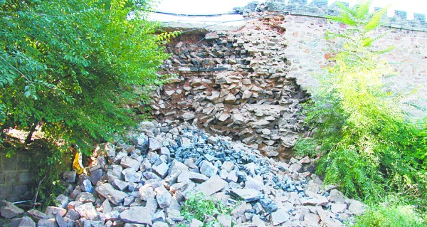 在世界文化遺產(chǎn)承德避暑山莊,一段長約4米的宮墻受連續(xù)降雨侵蝕8月17日發(fā)生坍塌,所幸沒有造成人員傷亡,目前,搶修工作正在進行中。