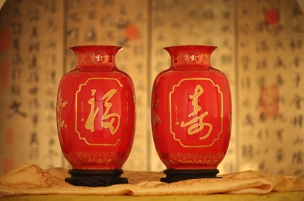 在中國共產(chǎn)黨90年的歷史中,形成了很多可歌可泣的“紅色精神”。值此建黨九十周年之際,各行各業(yè)都在以唱紅歌,學(xué)習(xí)長征精神等不同的方式紀(jì)念紅色革命,謳歌紅色時代精神,日前,國博金萃(北京)文化藝術(shù)有限公司推出建黨九十周年獻(xiàn)禮,國博金萃毛澤東福壽瓶,通體紅釉的瓷器,象征中華民族的本色,喜慶、吉祥、福運(yùn)、熱烈與激情,象征國運(yùn)昌隆,民富國強(qiáng)!