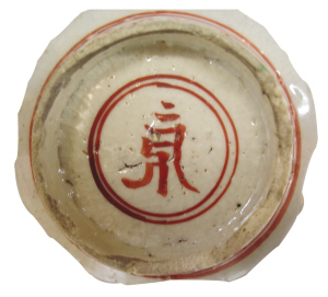 圖2更具有佛教的特點,碗心的蓮花是佛教的象征,取其清凈無染之意。佛菩薩的坐處稱蓮座、蓮臺,聚會處稱蓮池。而碗底有一紅彩梵文“吽”字,此字出自“六字大明咒”,或稱“六字真言”,即“嗡嘛呢叭咪吽”,藏傳佛教認為,常持誦六字大明咒,可以消除病苦、刑罰、非時死之恐懼,壽命增加,財富充盈。所以,在藏區(qū)常?梢钥吹饺藗兪謸u轉(zhuǎn)經(jīng)筒,口誦“六字真言”的景象。