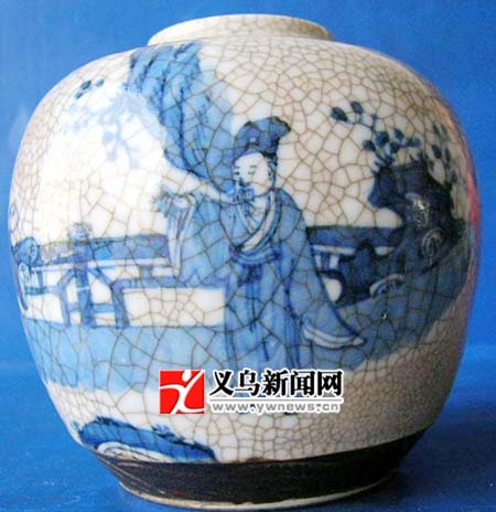 我滿臉疑惑地問(wèn)道:“這也算好東西?這么破了還有用嗎?”幾位藏友聽(tīng)后哈哈大笑,問(wèn)其原因才知道,原來(lái)這是一只清代時(shí)期的開(kāi)片人物青花罐,裂紋只是罐子的特征。我仔細(xì)看了后才發(fā)現(xiàn),這只高為12.8cm,口徑為5.5cm,底徑為8.2cm的罐子,開(kāi)片自然繪畫(huà)精細(xì)生動(dòng),胎體細(xì)膩完美,而我居然把它當(dāng)作垃圾給扔了,好在并無(wú)損害,不然會(huì)抱憾終生。
