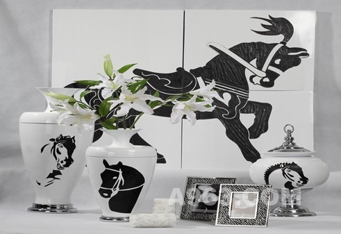 不管是古希臘神話傳說中的飛馬座 ,香港上流人物向往的馬會,還是世界上最聞名的賽車和運動跑車法拉利的標志,作品中提煉了馬的經(jīng)典動態(tài),俊朗的黑馬版畫,窈窕優(yōu)雅的花器,黑白寫照更體現(xiàn)出其高貴品味與優(yōu)雅生活。