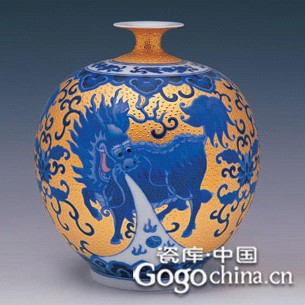 圖:金鑲玉青花麒麟獻瑞描金花瓶