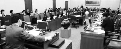 韓國國會外交通商統(tǒng)一委員會會議室內(nèi)最近擺放的兩件瓷器成為熱門話題。在會議室朝野議員座位中間擺放兩個瓷罐,一個紅褐色,一個白色。