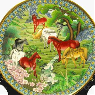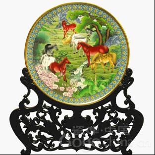 景泰藍是我國金屬工藝品中的重要品種。制作景泰藍先要用紫銅制胎,接著工藝師在上面作畫,再用銅絲在銅胎上根據所畫的圖案粘出相應的花紋,然后用色彩不同的琺瑯釉料鑲嵌在圖案中,最后再經反復燒結,磨光鍍金而成。景泰藍的制作既運用了青銅和瓷器工藝、又溶入了傳統(tǒng)手工繪畫和雕刻技藝,堪稱中國傳統(tǒng)工藝的集大成者。這種銅的琺瑯器創(chuàng)始于明代景泰年間,因初創(chuàng)時只有藍色,故名景泰藍,F代景泰藍已變成了一種工藝品名稱,而不是顏色了。
