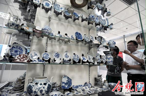 該館還展出幾萬片青花殘瓷及多個窯口的殘瓷片。據(jù)該博物館館長、天津市河北區(qū)收藏家協(xié)會會長邊正明介紹,這些瓷片中80%以上在天津老城廂、海河周邊等地區(qū)出土。