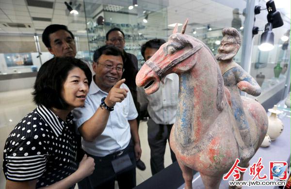 圖為古陶瓷博物館館長為市民講解“胡人馬”。