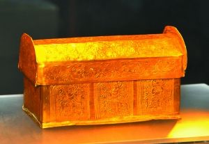 七寶阿育王塔、金棺、銀槨、大小銀函――這5件瘞藏佛教圣物的器物,不僅造型精美,工藝絕倫,還被學(xué)界視作研究宋代舍利瘞藏制度的重要材料,當(dāng)選一級文物實至名歸。而地宮內(nèi)鐫刻長篇銘文的石函,因其記錄有地宮的建造時間、瘞埋的佛教圣物等重要信息,也被專家定為一級文物。