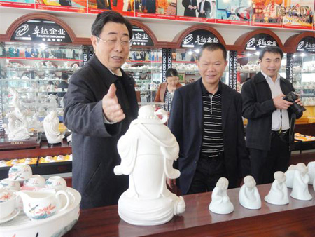 原福建省副省長、福建省政協(xié)副主席、現(xiàn)任省誠信促進(jìn)會會長潘心城于2012年3月19日蒞臨我司關(guān)心、指導(dǎo)!潘會長對我司的博物館展廳設(shè)計裝修、歷史文化和陶瓷傳承以及陶瓷產(chǎn)品等都高度贊賞,并提出寶貴的建設(shè)性意見和建議。