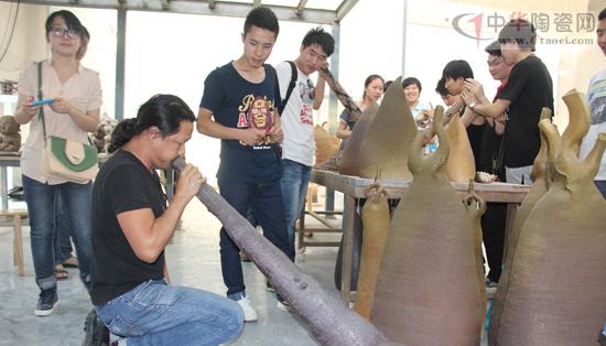 據(jù)悉,本次陶藝大會設(shè)有專業(yè)的陶藝演講和現(xiàn)場陶藝演示,富平陶藝村董事長徐都鋒、國際陶藝學會理事許以祺博士及各位陶藝家都進行了精彩的演講和陶藝現(xiàn)場演示,來自西安美術(shù)學院、西安文理學院、西安建筑科技大學、西安城市經(jīng)濟學校300余名學生和陶藝家們進行了溝通和交流。