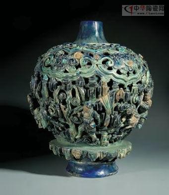 法花鏤空人物瓶