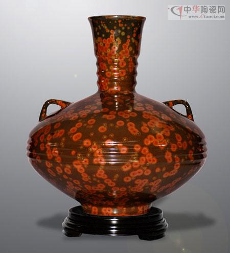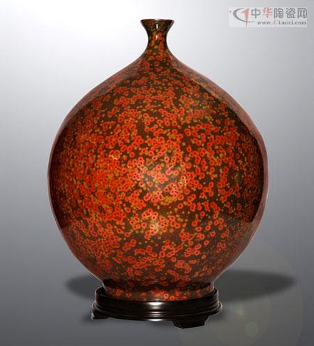 在近期結(jié)束的“2012中國國際輕工消費品展覽會”上,來自廣東的全福陶瓷實業(yè)有限公司的耀變天目金錢花釉藝術(shù)瓷獨放異彩,成為博覽會的亮點。“耀變天目”瓷器為我國南宋時代最佳名瓷,傳世珍品早已失傳700多年。僅存的三件“耀變天目茶碗”珍品,被日本作為國寶收藏于日本藤田博物館。“耀變”之意是形容釉中晶體周圍色彩豐富,并隨著觀察角度不同而變化。其燒成技術(shù)被稱為“神技”,“神技”神就神在施一種釉色,一經(jīng)燒制既呈現(xiàn)出色彩斑斕、變化莫測、斑點各異的結(jié)晶產(chǎn)品來,是人意不可為的純天然形成。