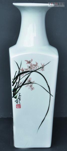 中國(guó)畫(huà)中的梅、蘭、竹、菊“四君子”常被用來(lái)表現(xiàn)清高脫俗的情趣,其君子之風(fēng)更為歷來(lái)的國(guó)畫(huà)家所偏愛(ài)。黃聰敏先生的寫(xiě)意花鳥(niǎo)瓷畫(huà)“四君子”,風(fēng)格注重傳統(tǒng)的筆墨意趣,但不沿襲前人的模式,而是以現(xiàn)代審美視角,把畫(huà)面情景置于特定的歷史氛圍之中,著重表現(xiàn)“四君子”多彩的自然生命活力,在創(chuàng)作中追求詩(shī)意畫(huà)境,講究筆情墨趣,于虛實(shí)相間中創(chuàng)造空間美: