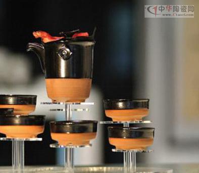 這套茶具以圓柱體為設(shè)計(jì)基本形,貫穿于每一個(gè)器件。圓柱體的造型形態(tài)給人一種均衡和中庸的穩(wěn)定感。蓋紐、雙耳、壺嘴直線和平面化小處理會(huì)令形態(tài)的變化顯得含蓄,以避免造型的單調(diào)。杯口微向外敞,與唇感接觸更佳。從品名上看,消費(fèi)者或許會(huì)認(rèn)為是佛寺專用,其實(shí)不然,“菩提”是一種生活心境的體現(xiàn),這種心境的表達(dá)是設(shè)計(jì)者借助了材質(zhì)工藝的肌理效果來(lái)完成的。精心調(diào)劑的釉料,燒成之后,色點(diǎn)隱約其中,色調(diào)暖和,給人以自然渾沌之感。而器件下半部不上釉的紫砂陶表面有細(xì)陽(yáng)線環(huán)繞,令手感粗糙,與光滑的釉面形成反差,但質(zhì)樸感卻是一樣的。同時(shí),所有的器件胎體厚重、扎實(shí)、手感較沉,厚重、渾沌、均衡、質(zhì)樸全部自然得體地整合在一起,這也許就是“菩提”之妙。