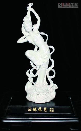 取材于敦煌飛天藝術(shù)。敦煌飛天是敦煌莫高窟的名片,是敦煌藝術(shù)的標(biāo)志。只要看到優(yōu)美的飛天,人們就會(huì)想到敦煌莫高窟壁畫藝術(shù)。佛教中把空中飛行的天神稱為飛天,是引導(dǎo)眾生的靈魂羽化升天到凈土天界的象征。作品的飛天站在蓮花上反彈琵琶,其輕盈的體態(tài),飄曳的長(zhǎng)裙,飛舞的彩帶,迎風(fēng)舒卷,飛翔姿態(tài)十分優(yōu)美,展現(xiàn)出纖纖神韻的飛天具有奮發(fā)進(jìn)取、豪邁有力、自由奔放、變化無(wú)窮的飛動(dòng)之美。該作品榮獲“2011年工藝美術(shù)大師作品暨工藝精品博覽會(huì)金獎(jiǎng)”。