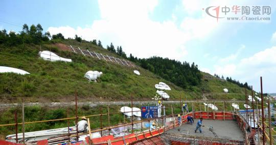 “中國(guó)瓷都”福建德化投資1000萬(wàn)元建設(shè)長(zhǎng)4.7公里的陶瓷文化景觀長(zhǎng)廊。圖為“名揚(yáng)四海”船形主城雕建設(shè)場(chǎng)景。