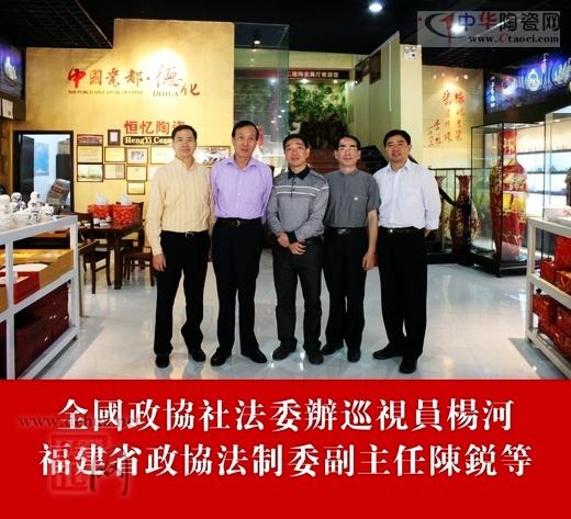 日前,全國政協(xié)社會和法制委員會辦公室巡視員楊河、省政協(xié)法制委副主任陳銳、市政協(xié)法制委負責人和縣政協(xié)主席蘇興羽、副主席劉志陽等一行蒞臨“中國龍瓷”考察。