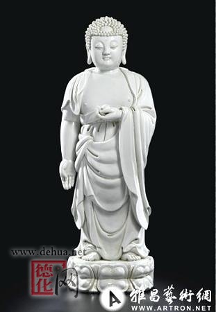 檢查十五年來國際拍賣市場中,德化白瓷每年的主要成交記錄,可以清楚地看出價格變動的曲線和不同器型的價格差。這是一份很有意思的資料,1997年3月紐約蘇富比‘清中期18世紀渡海觀音立像“(H:50.8)成交價29,900美元;12月倫敦佳士得“清中期18世紀如意觀音坐像”(有印章)成交價19,550英鎊;9月紐約蘇富比“清中期18世紀持經(jīng)觀音立像”成交價16,000美元;4月北京嘉德“清17世紀丁水奇珍印章獅耳香爐”(明晚期印文山水珍藏)成交價11,000元人民幣。