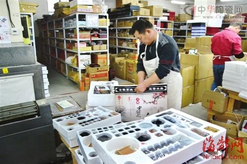 一家德化陶瓷企業(yè)工人正為當日成交的網(wǎng)絡訂單包裝發(fā)貨