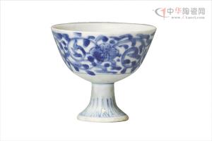 明·青花花卉紋高足碗(景德鎮(zhèn)窯)