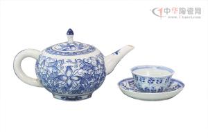 元·青花瓷菊花紋小執(zhí)壺 小茶碗