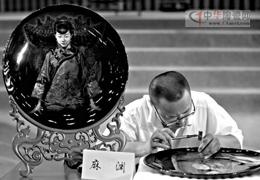 陶器組的第一名王卯全埋頭在面前已經(jīng)烤了一個(gè)金色底塊的十八寸陶瓷盤里,以小楷書寫著一篇《般若波羅蜜多心經(jīng)》,神情專注。王卯全介紹,寫在陶瓷上的書法,所用的書寫顏料類似油漆顏料,寫起來不易。“在陶瓷上寫得好,在紙上一定寫得好;在紙上寫得好,卻不一定能在陶瓷上寫得好。”他從事陶瓷書法技藝已有30年,與臺(tái)下觀眾分享自己這些年的心路歷程時(shí),他說:“我喜歡陶瓷書法,我熱愛陶瓷書法,既熱愛又能從事這項(xiàng)事業(yè),我覺得我是幸福的。”當(dāng)主持人提及他現(xiàn)在獲得的榮譽(yù)時(shí),他認(rèn)為除了熱愛,還有“就是堅(jiān)持,堅(jiān)持就是勝利。”王卯全還鼓勵(lì)臺(tái)下的觀眾,“我希望每一位朋友,無論你做什么,只要堅(jiān)持,就一定能有所收獲。”臺(tái)下掌聲響起。