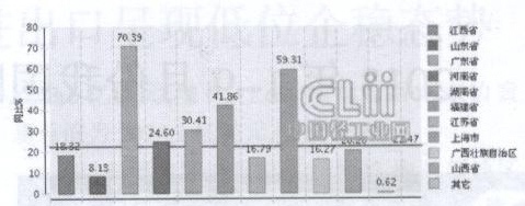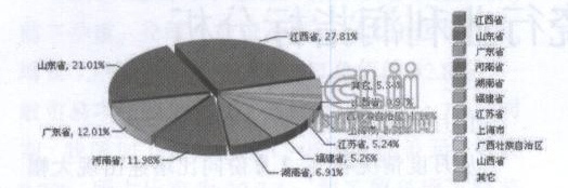 2013年1-9月陶瓷行業(yè)完成利潤總額前四位的地區(qū)一次是江西、山東、廣東、河南,其中江西累計(jì)完成利潤總額同比增長18.32%,占27.81%;山東累計(jì)同比增長8.13%,占21.01%。詳見圖4.
