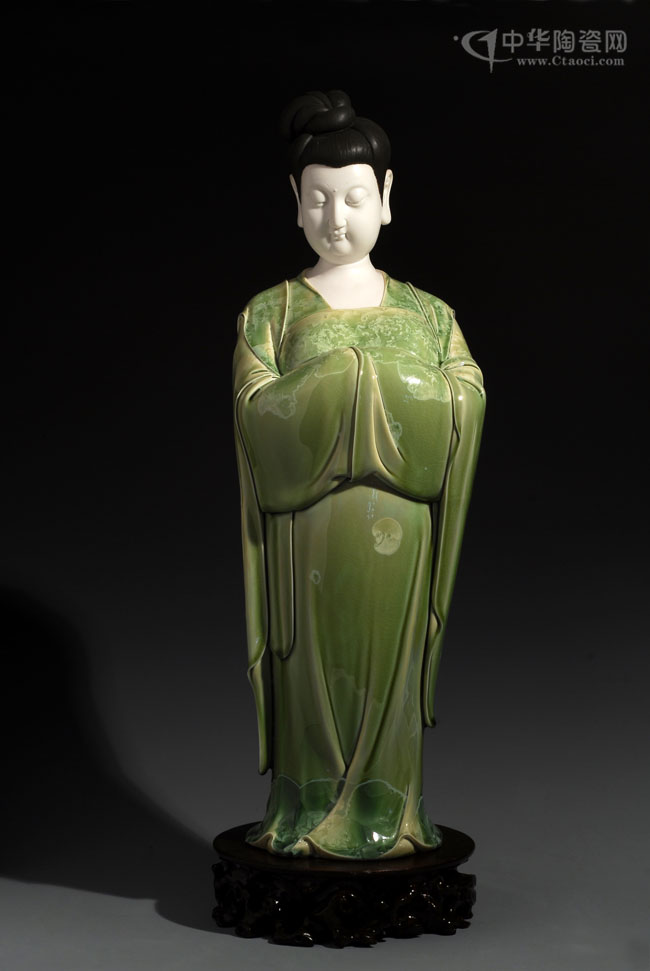 他創(chuàng)作了數(shù)以萬計的佛教瓷塑作品,銷往中國大陸、港澳臺與東南亞各國,新加坡佛教總會主席惟儼大和尚曾二次到德化造訪,韓國靈鷲寺主持性坡和尚也慕名前往德化造訪,可見他的佛像瓷塑的功力非凡。同時,他還撰寫《論何朝宗瓷塑代表作的藝術(shù)特點》《淺議德化陶瓷文化的特性》《傳統(tǒng)造物的“和諧”理念對中國現(xiàn)代陶藝的影響》等6篇論文在《美術(shù)大觀》《陶瓷科學(xué)與藝術(shù)》等CN期刊發(fā)表。