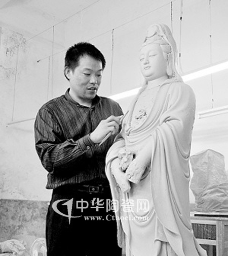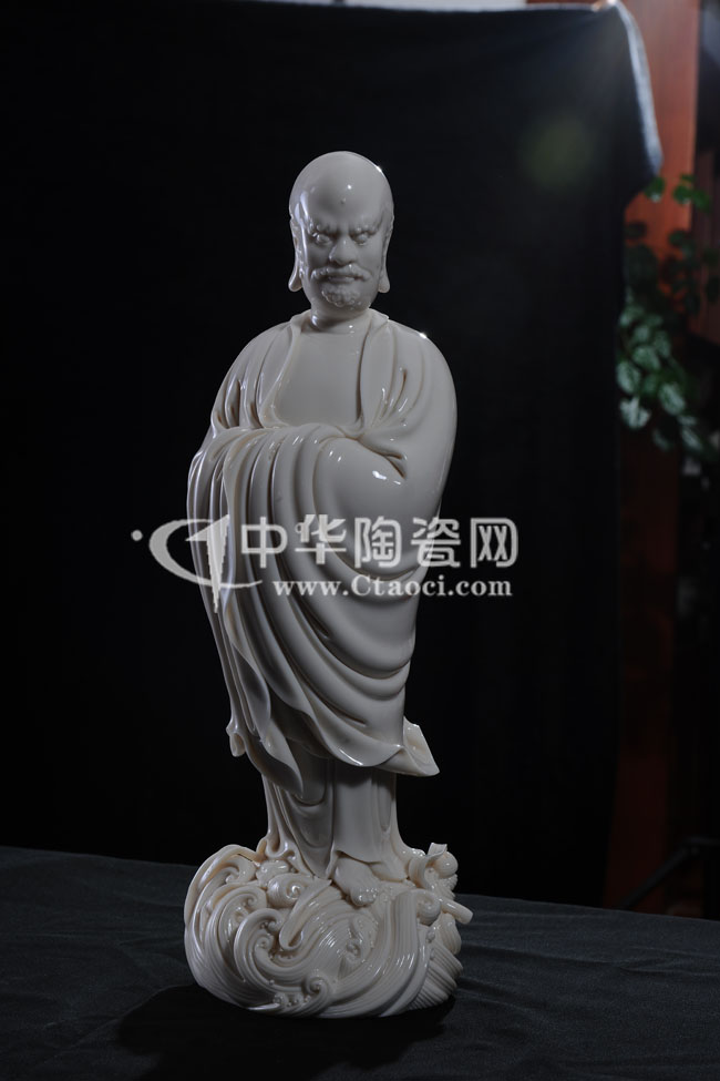 連紫華是中國國家博物館建館以來首個在此舉辦個展的中國陶瓷藝術(shù)家。出生在瓷都德化的連紫華是福建省工藝美術(shù)大師、福建省陶瓷藝術(shù)大師。多年來,他沉浸于繼承弘揚傳統(tǒng)瓷雕藝術(shù),潛心于“中國白”瓷雕藝術(shù)的傳承與創(chuàng)作,專注于德化陶瓷雕塑傳統(tǒng)題材——佛教人物造像的研究與創(chuàng)作,在吸收借鑒中外雕塑藝術(shù)精華的同時,又融匯了文化、藝術(shù)、科技等元素,將傳統(tǒng)與現(xiàn)代的技法交融運用,增加作品的動感、韻律、節(jié)奏、線條等藝術(shù)因素,在保留傳統(tǒng)技法的魅力的基礎(chǔ)上,塑造出與現(xiàn)代審美情趣相結(jié)合的思想內(nèi)涵和個性,實現(xiàn)了對德化傳統(tǒng)瓷雕的發(fā)展和突破,形成了形神兼?zhèn)洹⒕窦毧、?yōu)美傳神,頗具明代雕塑大師何朝宗的藝術(shù)之風(fēng)。