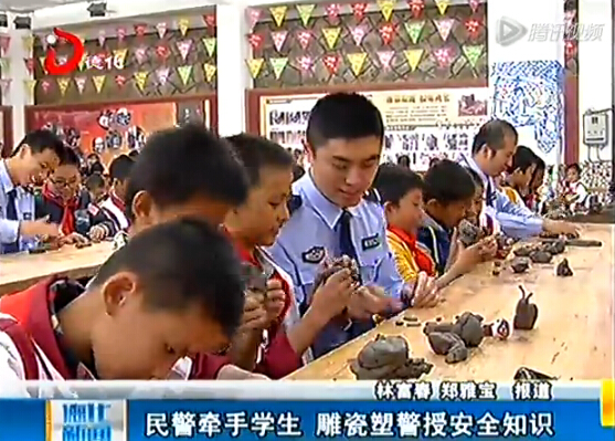 【同期聲 民警 林。海ㄌ沾蓜(chuàng)作)緩解我們平時(shí)工作的壓力,比較輕松愉快去參與到跟小朋友做陶瓷工藝上,另一方面跟小朋友交流他平時(shí)上學(xué)各個(gè)方面的安全注意事項(xiàng),還有防火安全應(yīng)該注意什么樣(事項(xiàng))!