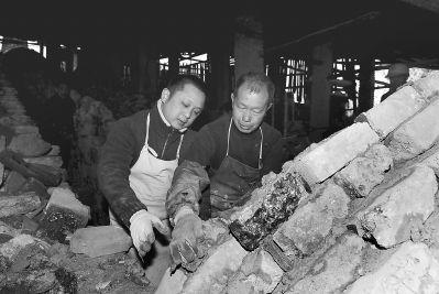 “龍窯燒制最高溫度可達(dá)1300多攝氏度,熱脹冷縮和高溫熔融等因素,會讓龍窯變形甚至坍塌,使用一段時間后都得大修。” 顏瑞柔介紹,一般大修一次可燒120次窯,由于現(xiàn)在的企業(yè)都改用電窯或汽窯,柴燒的月記窯使用率相對不高,一年也就10多次,這次重修的是窯頭和窯身,窯尾是六年前重修的,仍完好無損。