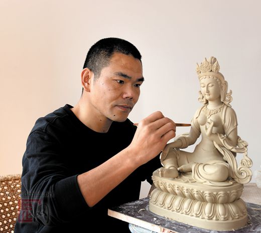 “做瓷雕,學(xué)習(xí)傳統(tǒng)工藝,一定要耐得住寂寞,吃得了苦。”鄭金星介紹, 1990年,19歲的他從德化職業(yè)技術(shù)學(xué)校畢業(yè),先后跟隨福建省工藝美術(shù)大師李甲棧