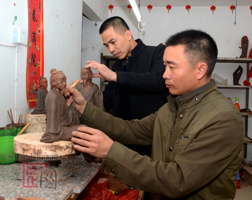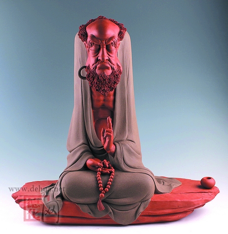 “陶知然”,恰如其名,他們的作品追求陶土的天然古樸。在以“白”見長的瓷都德化,他們的藝術(shù)風(fēng)格顯然獨(dú)特。但他們并沒有摒棄德化傳統(tǒng)瓷雕的正宗技法,反而是加以繼承運(yùn)用,再融匯了現(xiàn)代的審美追求,將創(chuàng)作的思考和視角伸向了文化史上引起他們共鳴的人物與故事,憑借著兩人的技藝發(fā)揮和再創(chuàng)造,在獨(dú)具魅力的紫砂人物形象塑造中,呈現(xiàn)出鮮明的人文內(nèi)涵。