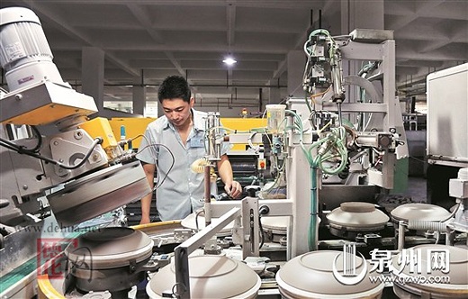 德化縣協(xié)發(fā)光洋陶瓷企業(yè)從國外引進(jìn)六條全自動生產(chǎn)線,瓷坯自動滾壓成型,既節(jié)省勞動力,又提高產(chǎn)量。近年來,德化眾多陶瓷企業(yè)主動適應(yīng)經(jīng)濟(jì)新常態(tài),不斷探索產(chǎn)業(yè)轉(zhuǎn)型升級之路。去年該縣實(shí)現(xiàn)陶瓷產(chǎn)值177.15億元。