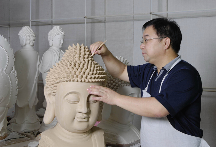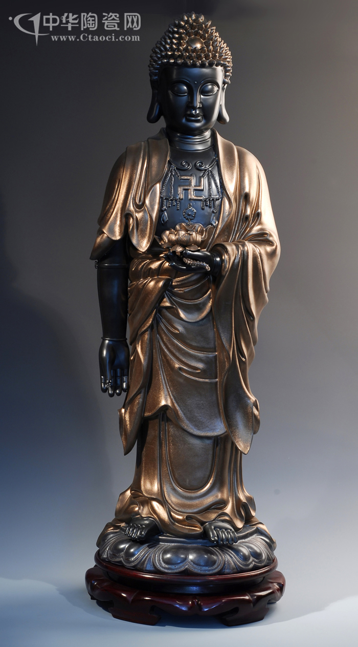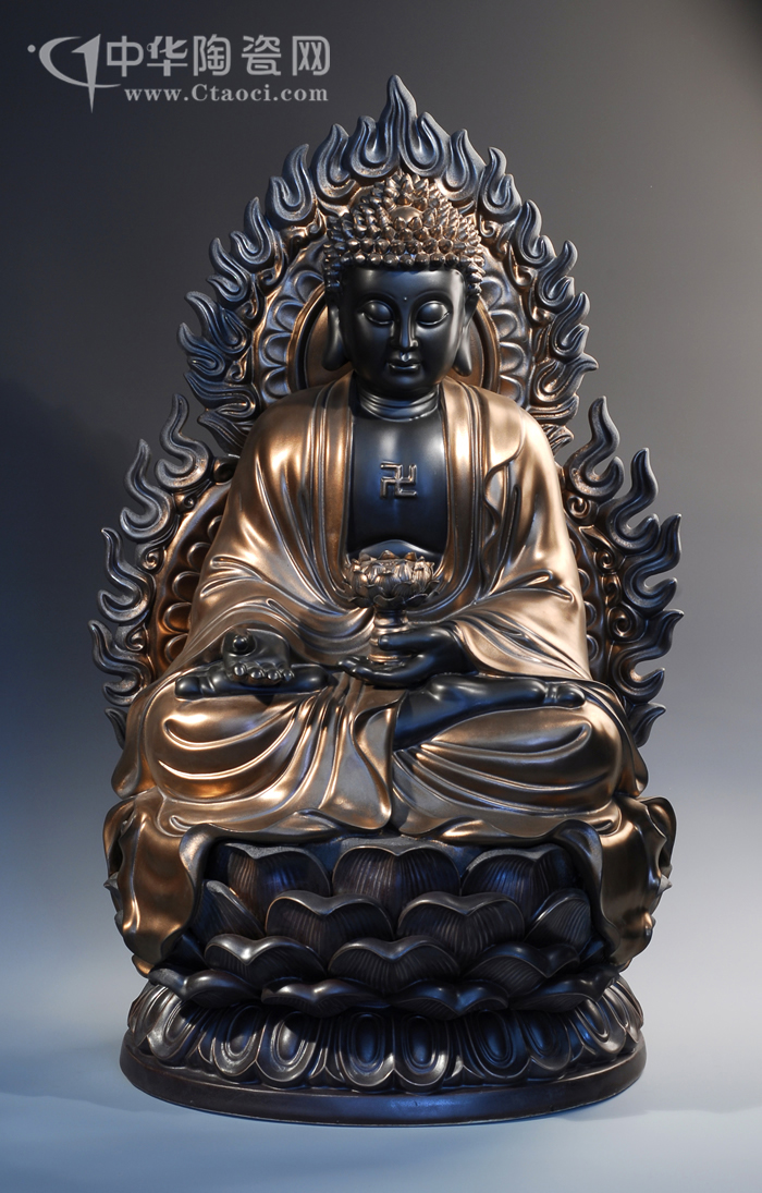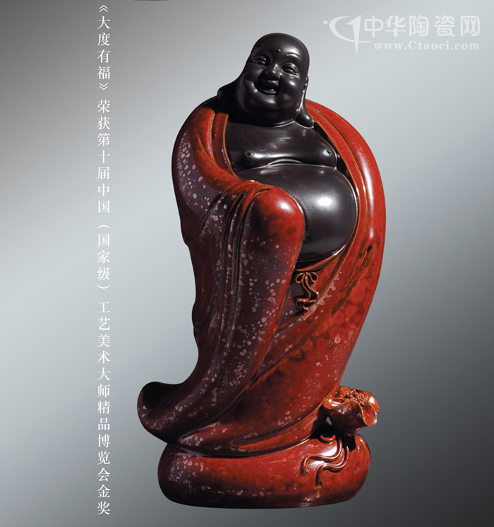 其作品堅持走創(chuàng)新路,融禪心于陶瓷藝術(shù)中,融合“佛像”、“茶道”、“香道”、“花道”,彰顯禪藝術(shù)。