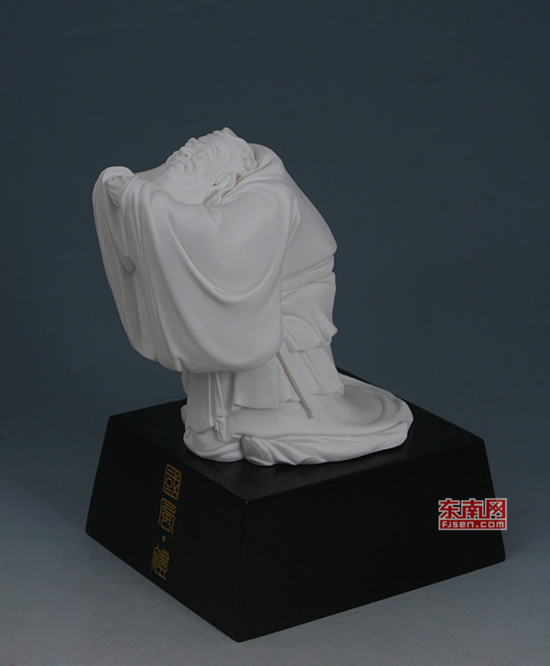 于是,評委們看到了一尊別具一格的孔子瓷塑:一身長衫的孔夫子仍然是拱手于前,但是長袖之上,拱托著一把古琴,將這位至圣先師傳禮樂于天下的迫切心愿,活脫脫地刻劃出來!