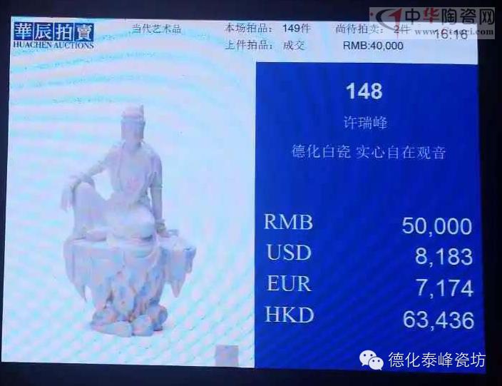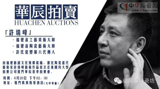 由福建藝盛文化策劃組織,德化百年瓷藝世家許氏第六代傳人、當(dāng)代藝術(shù)家許瑞峰的個(gè)人藝術(shù)作品首次走進(jìn)國內(nèi)大型拍賣公司廈門華辰春季拍賣會(huì)。6月20日,廈門華辰春季拍賣會(huì)圓滿落幕,拍出藏品總成交金額五千多萬元。