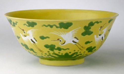 清代瓷器,仍以景德鎮(zhèn)為中心。在明未連年混戰(zhàn)當(dāng)中,景德鎮(zhèn)也受到嚴(yán)重?fù)p壞,窯場(chǎng)凋零,匠人四散。直到清順治十一年才恢復(fù)生產(chǎn),景德鎮(zhèn)復(fù)為御窯廠。這一時(shí)期的產(chǎn)品有明顯的過(guò)渡時(shí)期特征。胎體比較厚重,制作略顯粗糙,一般底部斜削草率,還粘有砂粒。器物沿口部分施醬黃釉,深淺不一,呈黃褐色,為順治時(shí)期的重要特征。